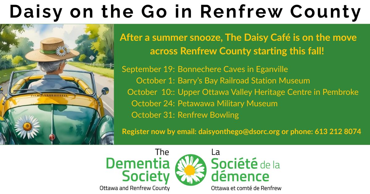 Daisy on the Go is a social initiative designed to provide a welcoming and enjoyable experience for both people with early to moderate dementia and their caregivers. The group meets for two hours of enriching activities like live music, bowling, and museum visits across Renfrew County from 10 AM to 12 PM. The program covers entry fees and refreshments, but transportation is not provided. Join us to create wonderful memories. Reserve your spot as spaces are limited!